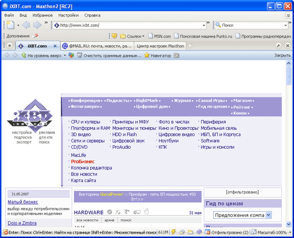 Любой дополнительный модуль может быть включен и отключен из Центра настроек Maxthon. При наличии на экране Панели Дополнений, из нее можно вызывать настройки некоторых плагинов, а также задействовать их функции.